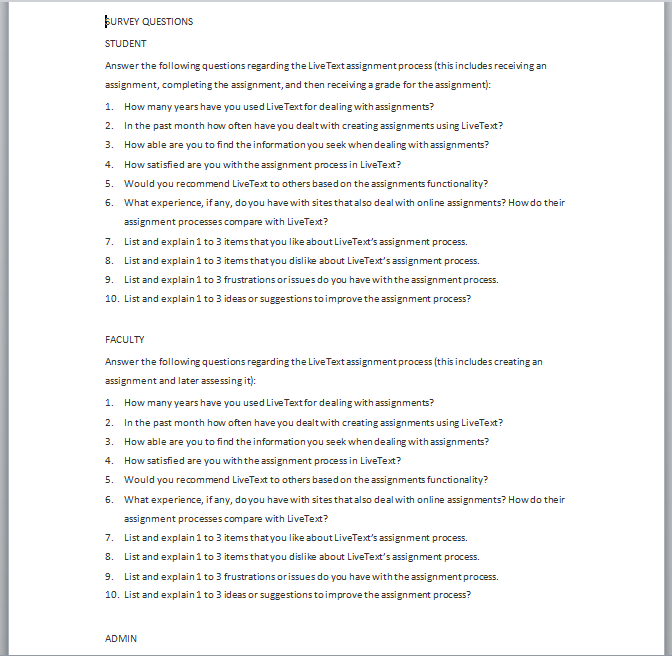 An educational assessment company required a redesign of their flagship application. The issue was that college students and faculty needed an updated solution for submitting and assessing educational assignments. I took a look at competitors’ products to see functionality and interaction gaps between the products. Next, I interviewed tech support and implementation managers to note the positives and pain points of the current solution. I also sent out out a survey to faculty and students asking about their job/tasks, and how they interact with the current iteration of the product. For instance, it took extra clicks to perform tasks such as attaching assignments. Also, students could not edit Word and Excel documents directly in the application, which is a feature that was highly desired.
